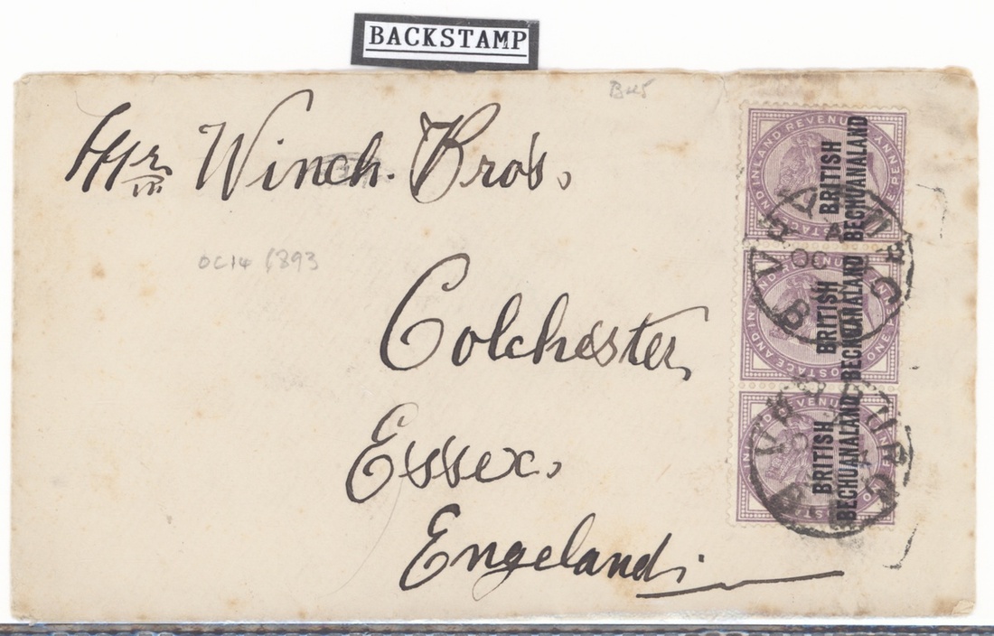 1892 (14 Dec.) envelope to England bearing 1891-1904 6d. purple on rose-red tied by