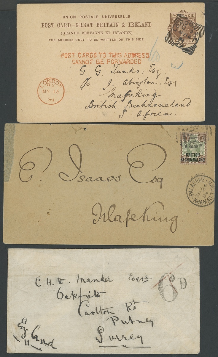 A small group of covers with stampless envelope to Putney bearing a faint "T" in red crayon overstruck by "6