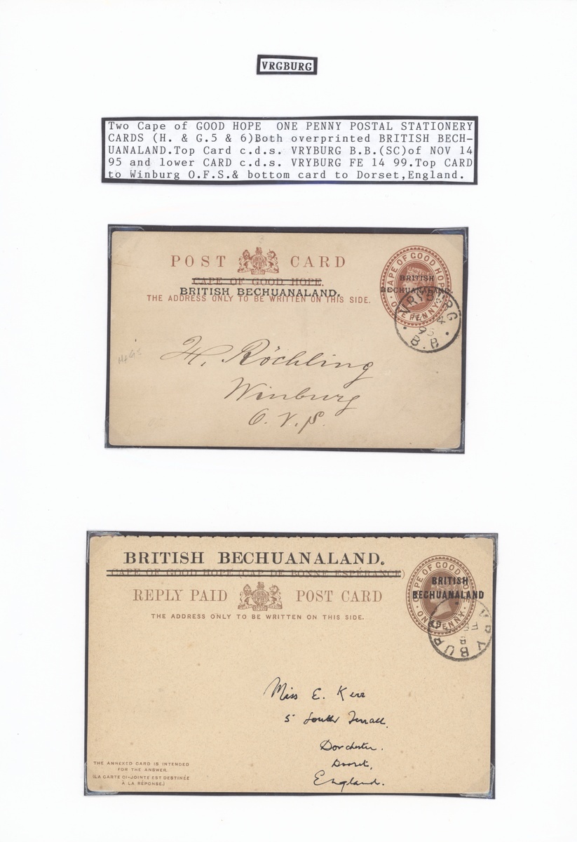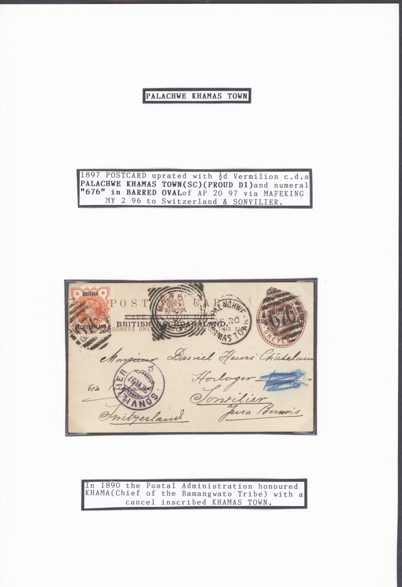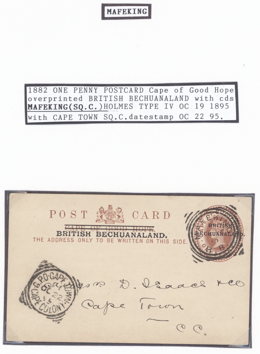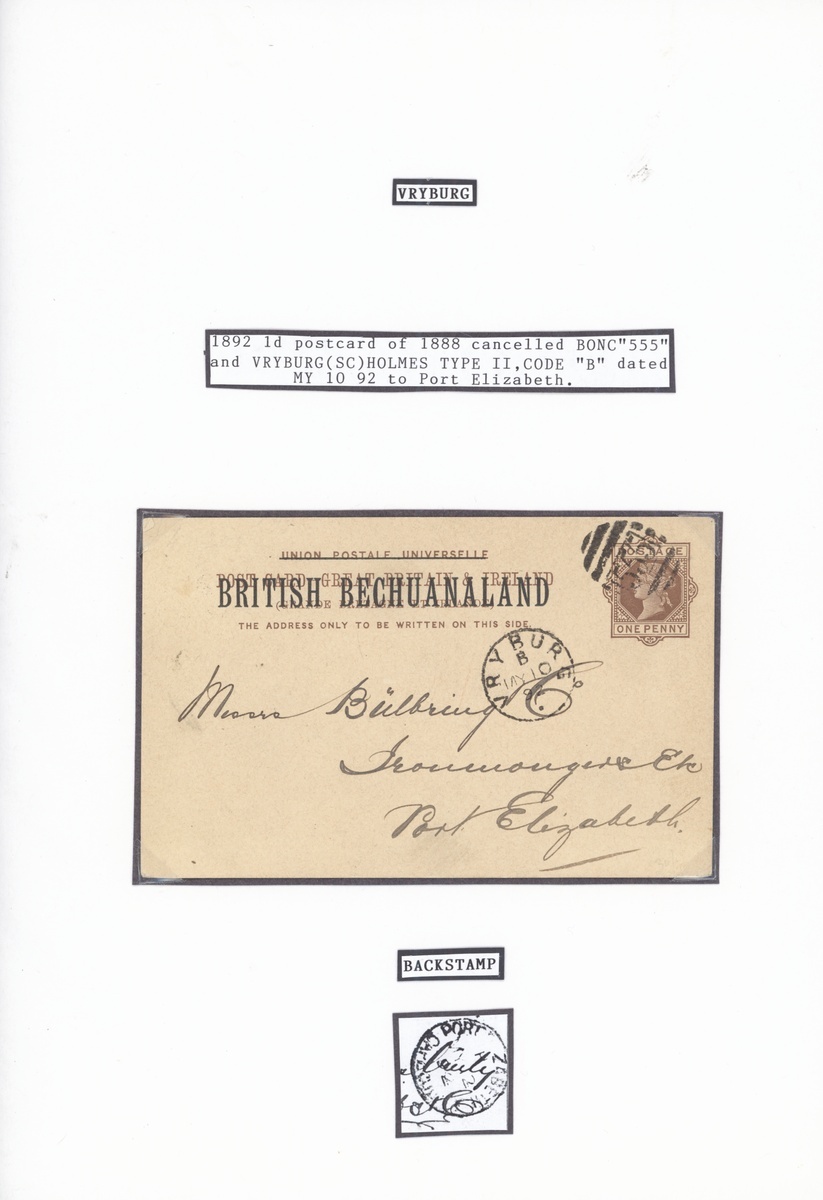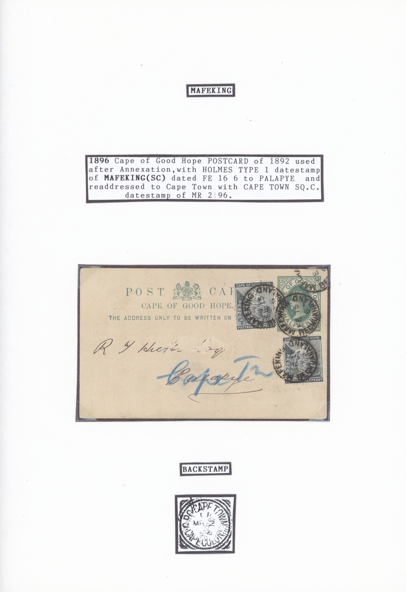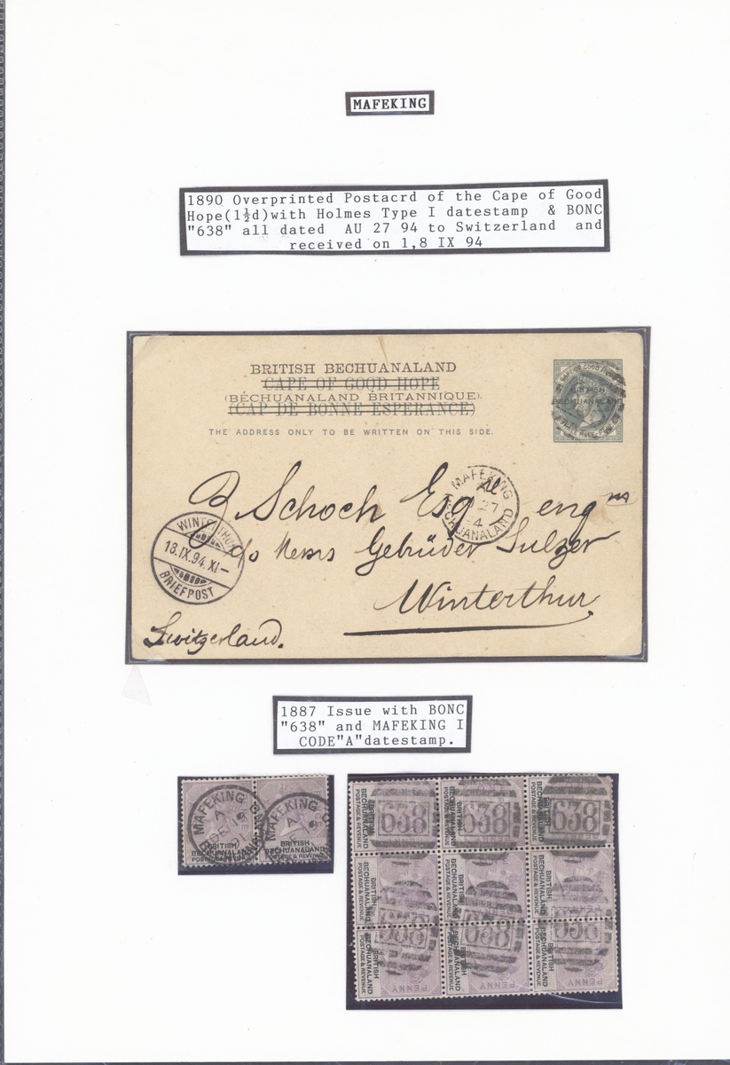 A group of Postal Stationery (10) including 1890 Cape overprinted 1½d. postcard to Switzerland with Holmes type I datestamp and BONC
