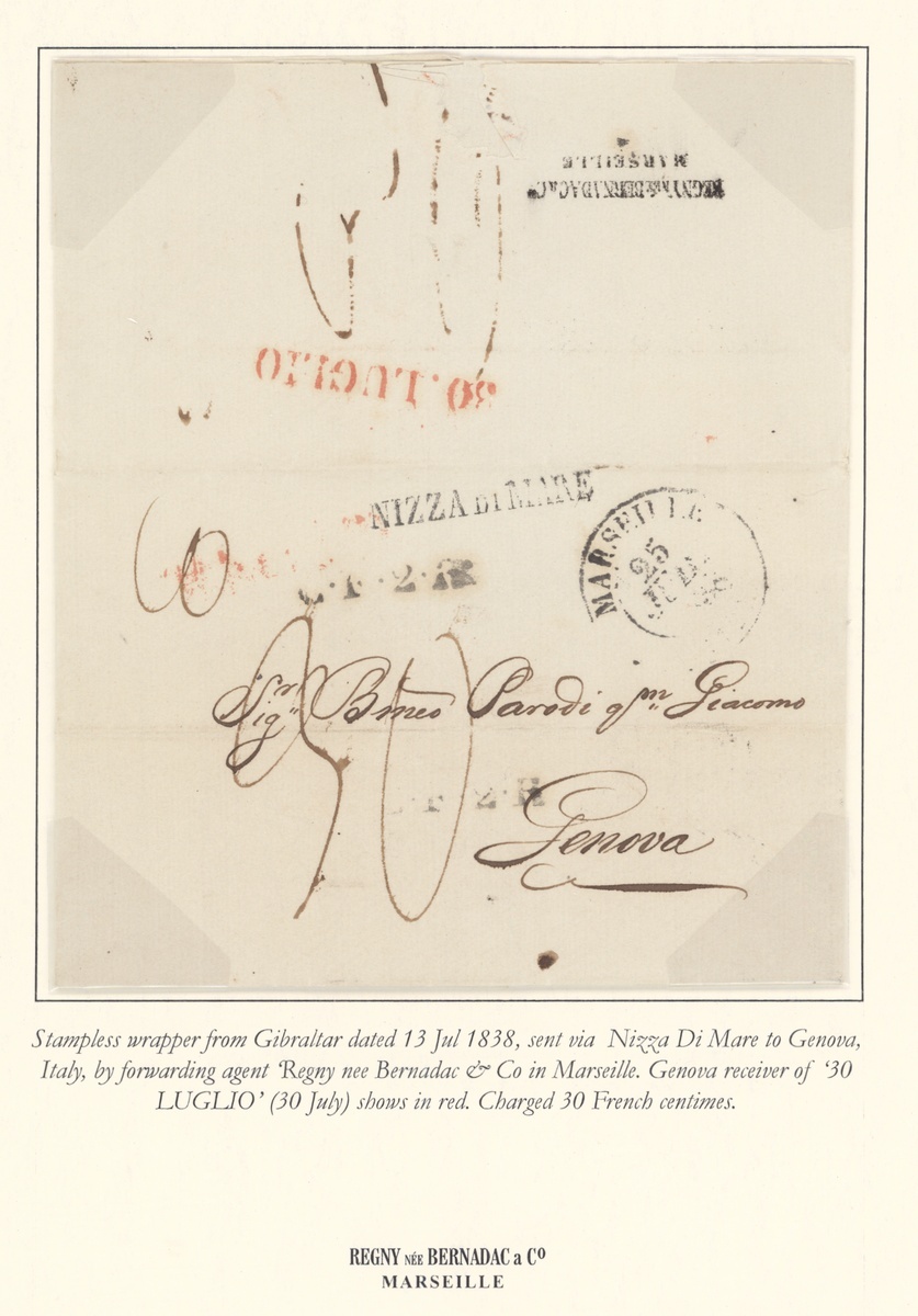 1838-58 postal history selection (5) including 1838 entire letter addressed to Genoa charged 30c. and showing