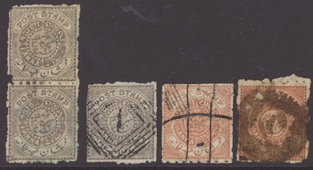 A used selection comprising ½a. red-brown (2) and 1a. drab (3 including a lightly cancelled vertical pair), mixed condition. S.G. 11, 12, £1,900.