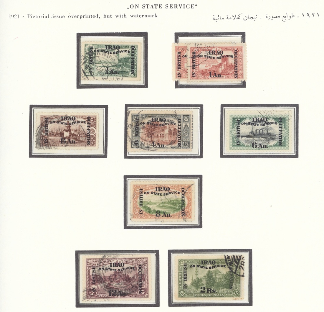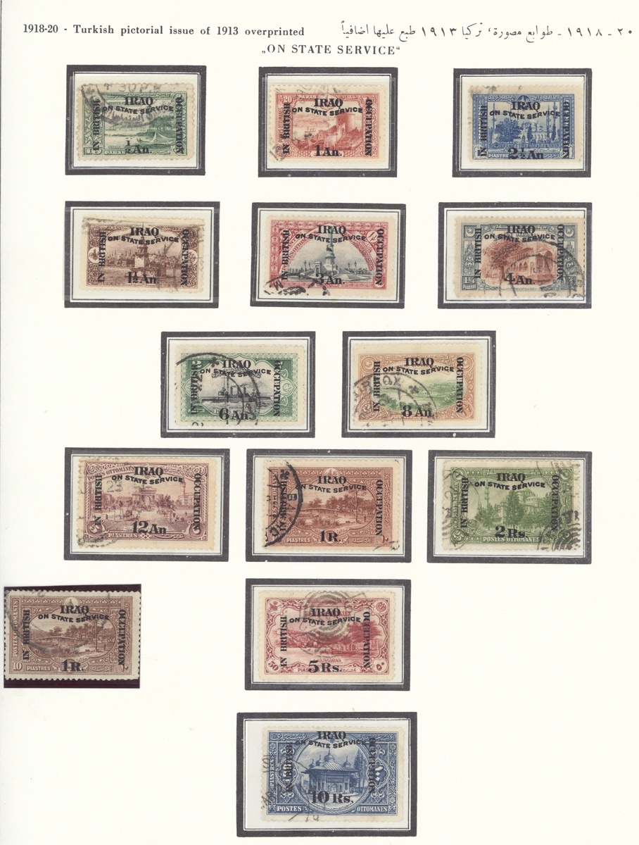 1918-21 no watermark ¼a. on 5pa. to 10r. on 100r. (with both 1r. on 10pi.), watermarked set of three, 1920-23 Official no watermark ¼a. on 10pa. to 10r. on 100pi. (with both 1r. on 10pi.), watermarked set of eight, used, fine. S.G. 1-18, O19-40, £880