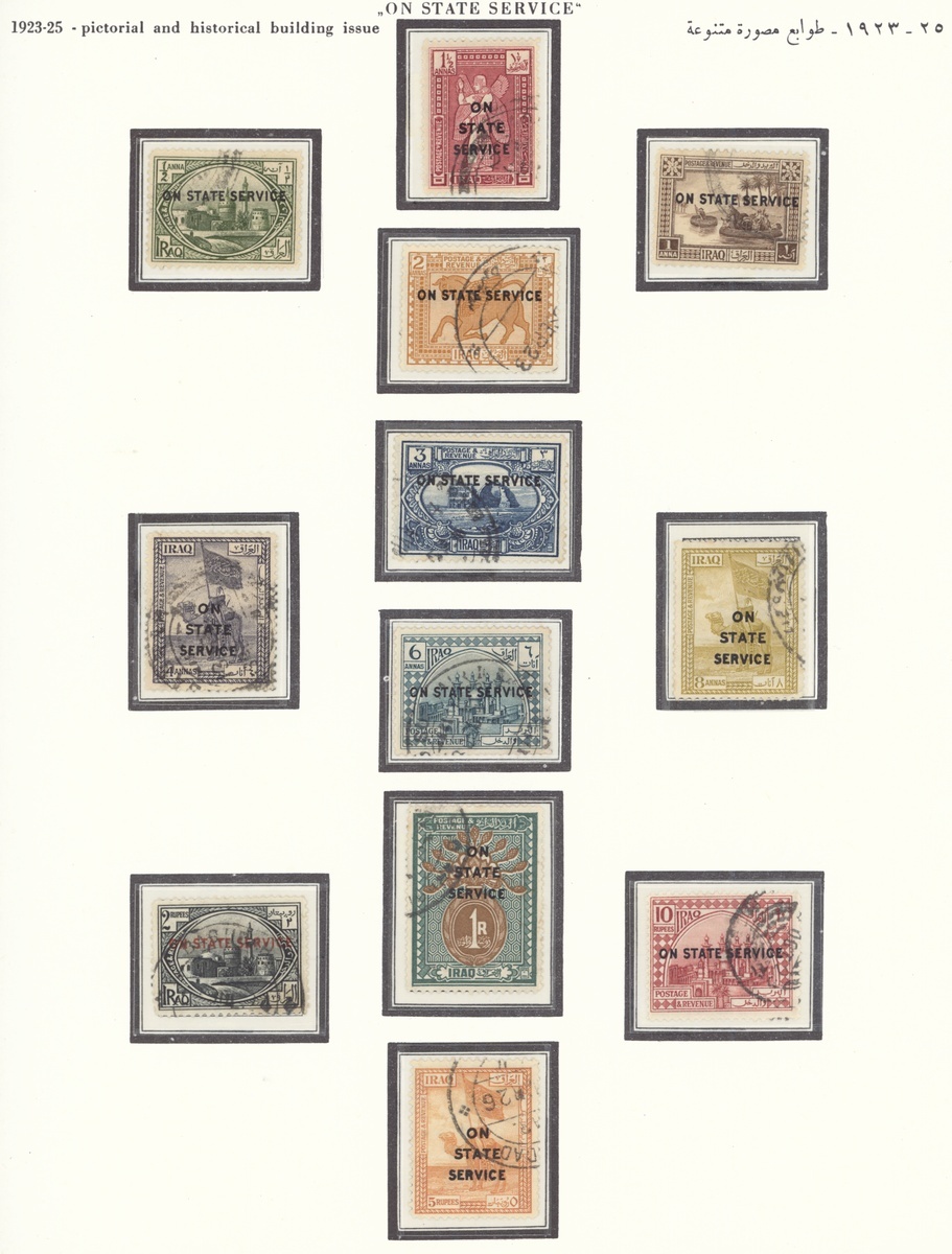 1923-25 King Faisal I ½a. to 10r., 1927 1r., Official 1923 and 1924-25 sets, 1927 1r., used (some Telegraphic cancellations), fine. S.G. 41-53, O54-77, 78, O79, £300+