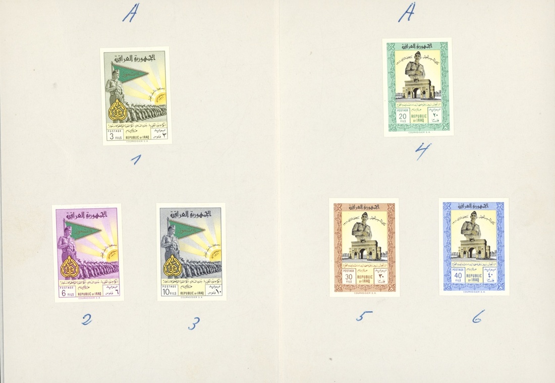 1961 Army day, set of six imperforate Proofs in the issued colours, partly affixed to Courvoisier presentation folder, fine. S.G. 546-551 vars.
