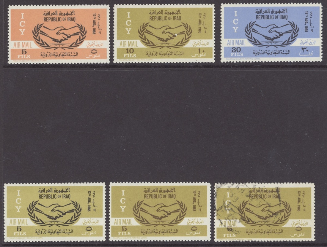 1965 I.C.Y set of three, also 5f. black and light olive-yellow error of colour mint and 5f. bistre-brown and light olive-yellow (mint and used), fine. S.G. 694-966, 694a, 694 var.