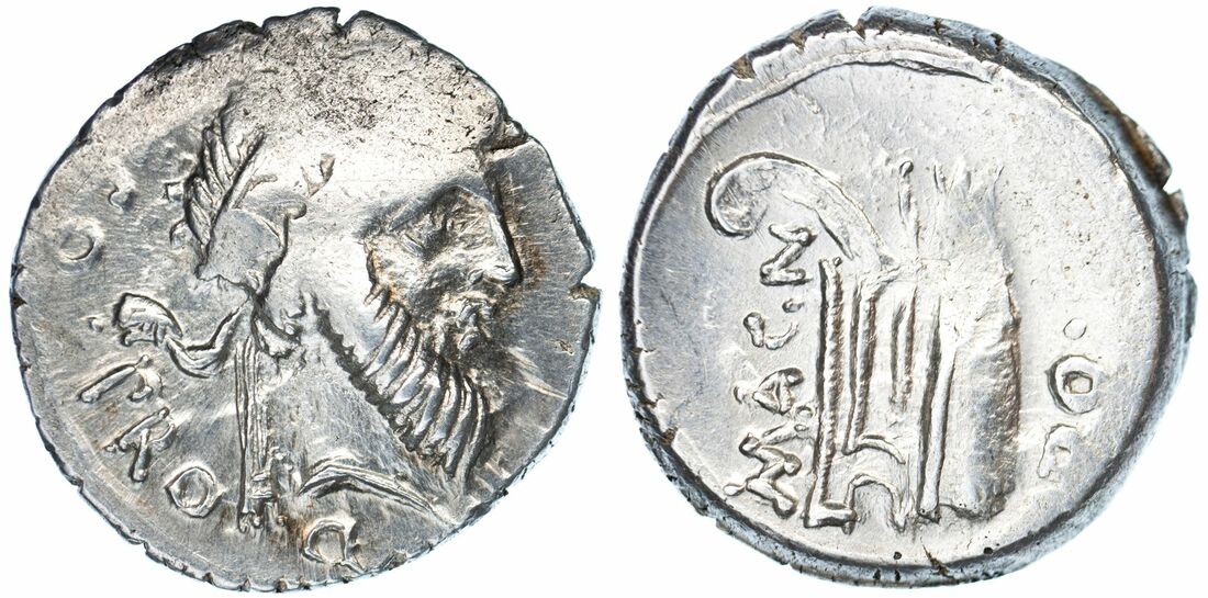 Roman Republic, Cnaeus Pompeius Magnus (Pompey the Great) and Cn. Calpurnius Piso, AR Denarius, struck in Greece, c. 49-48 BC,