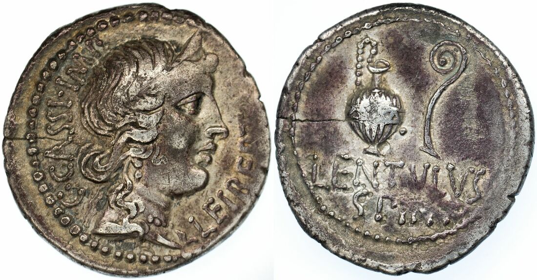 Roman Republic, Cassius, AR Denarius, Military Mint, 42 BC, Diademed head of Liberty right,