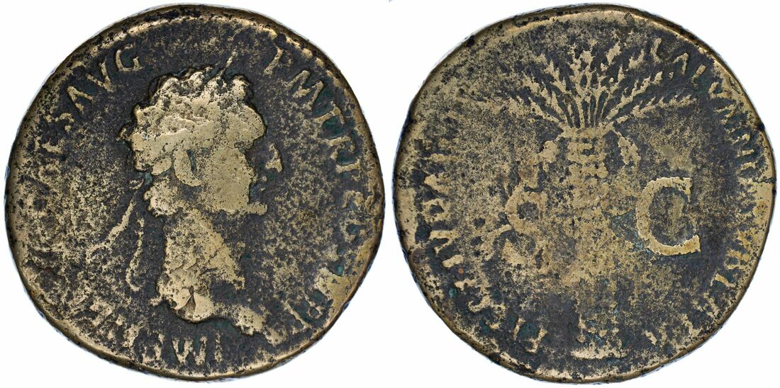 Roman Empire, Nerva (AD 96-98), AE Sestertius, Rome, c. 96, IMP NERVA CAES AVG P M TR P COS III P P, laureate head right, rev. FISCI IVDAICI CALVMNIA SVBLATA, palm tree with two large bunches of dates, S-C across fields, 26.37g (Hendin 6634; RIC 82; BN 97; BMC 105; Cohen 54), porous, with a rich 'Tiber' patina, fine