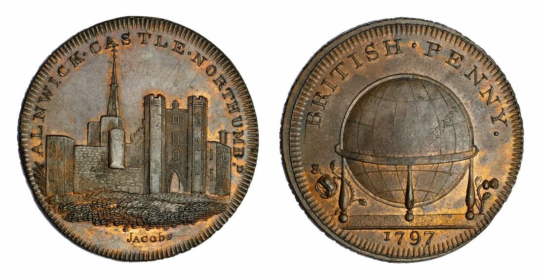 Skidmore's Globe Series, NORTHUMBERLAND, Alnwick, Penny, 1797, ALNWICK . CASTLE . NORTHUMB.
