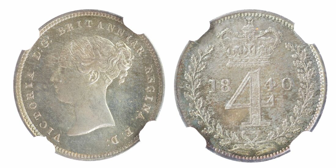 NGC MS67 *TOP POP* | Victoria (1837-1901), Maundy Fourpence, 1840, young head left, rev. crowned value, plain edge, 6h (cf. ESC 2450; cf. Bull 3483; S.3917), some minor friction marking to the obverse, otherwise with a brilliance to pleasingly toned surfaces, much as struck, in NGC holder, graded MS67 | *TOP POP* (Cert. #6134548-013)