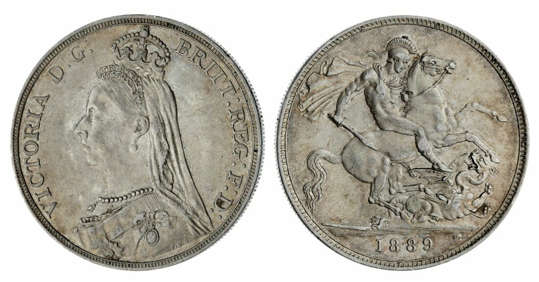 Victoria (1837-1901), 'Golden Jubilee' Crown, 1889, crowned bust left, rev. St George and Dragon, milled edge, 28.25g, 12h (ESC 299; Bull 2589; S.3921), lightly bagmareded and a touch of rub to the highest points of the reverse, nevertheless with an attractive tone, bold very fine