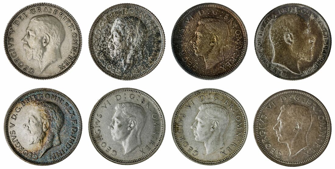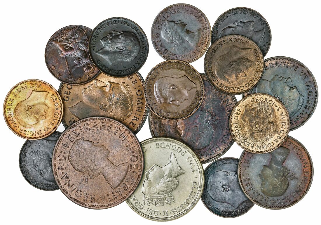 Edward VII (1901-1910), Matte Proof Threepence, 1902; Maundy Threepence, 1902; 1903; Threepence, 1905; 1906; 1907; 1908; 1909; 1910 (S.3984), mostly toned, some lustrous, fine to good very fine; George V (1910-1936), Threepence, 1911; 1912; 1913; 1914; 1915; 1916; 1917; 1918; 1919; 1920; 1921; 1922; 1926; 1928; 1930; 1931; 1932; 1933; 1934; 1935; 1936 (S.4015; 4026; 4042), the 1922 and 1934 fine, otherwise mostly toned and lustrous, very fine to extremely fine; George VI (1936-1952), Threepence, Proof 1937; 1937; 1938; 1939; 1940; 1941; 1942; 1943; 1944 (S.4085), the Matte Proof uncirculated, the Proof scratched yet brilliant, about extremely fine, the rest very fine to extremely fine; Matte Proof Sixpence, 1902, milled edge, 12h, 2.80g (ESC 1786; Bull 3598; S.3983), uncirculated; and Farthing, 1902; 1905; 1907, plain edges, 12h, 2.86g; 12h, 2.79g; 12h, 2.96g (S.3992), very fine; George V (1901-1910), Proof Sixpence, 1911, milled edge, 12h, 2.81g (ESC 1796; Bull 3872; S.4014), cleaned, yet with some brilliance, very fine; Proof Sixpence, 1927, milled edge, 12h, 2.83g (ESC 1816; Bull 3898; S.4040), speckled toning, extremely fine; Sixpence, 1934, milled edge, 12h, 2.82g (ESC 1823; Bull 3915; S.4041), toned, extremely fine; Farthing, 1913, 1923, 1930, plain edges, 12h, 2.85g; 12h, 2.82g; 12h, 2.74g (S.4059; 4060; 4061), very fine to extremely fine; George VI (1937-1952), Proof Sixpence, 1937, milled edge, 12h, 2.83g (ESC 1827; Bull 4219; S.4084), fingermarked, yet toned, extremely fine; Sixpence, 1937; 1938, 1939, milled edges, 12h, 2.81g; 2.82g; 2.79g (ESC 1826; 1828; 1829; Bull 4218; 4221; 4224; S.4084), some lustre very fine; George VI (1937-1952), Penny, 1937, plain edge, 12h, 9.59g (S.4114), extremely fine; Proof Halfpenny, 1951, plain edge, 12h, 5.60g (S.4117), toned, red beneath, extremely fine; Proof Farthing, 1937, plain edge, 12h, 2.82g (S.4116), extremely fine; Proof Farthing, 1950, plain edge, 12h, 2.87g (S.4119), extremely fine; Proof Farthing, 1951, plain edge, 12h, 2.78g (S.4119), uncirculated; Elizabeth II (1952-2022), Penny, 1953, plain edge, 12h, 9.45g (S.4154), extremely fine; Penny, 1967, plain edge, 12h, 9.18g (S.4154), extremely fine; Halfpenny, 1953, plain edge, 12h, 5.59g (S.4155), extremely fine; Farthing, 1953, plain edge, 12h, 2.80g (S.4165), extremely fine; Two Pounds, 1995, milled edge, 12h, 16.21g (S.K6), extremely fine (63)