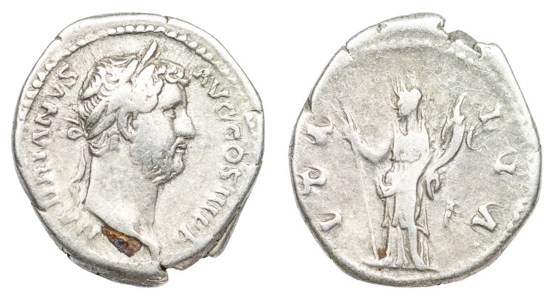 Roman Empire, Hadrian (AD 117-138), AR Denarius, 'Travel Series' Issue, Rome, struck c. 130-133, HADRIANVS AVG COS III P P, laureate head right, rev. ITALIA, Italia standing left, holding sceptre and cornucopiae, 3.01g (RIC 1540; BMC 853), slightly worn, good fine or better