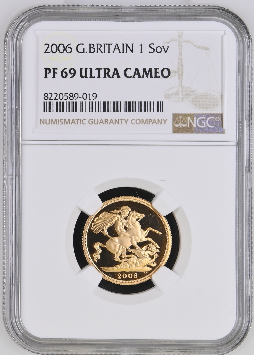 (g) PF69 ULTRA CAMEO | Elizabeth II (1952-2022), Proof Sovereign, 2006, crowned bust right, by Ian Rank-Broadley, rev. St George and Dragon, edge milled, 12h (S.SC4), brilliant as struck, in NGC holder, graded PF69 ULTRA CAMEO (Cert. #8220589-019)