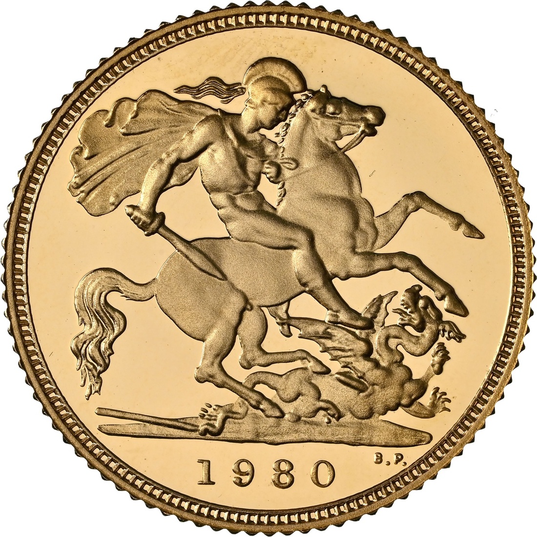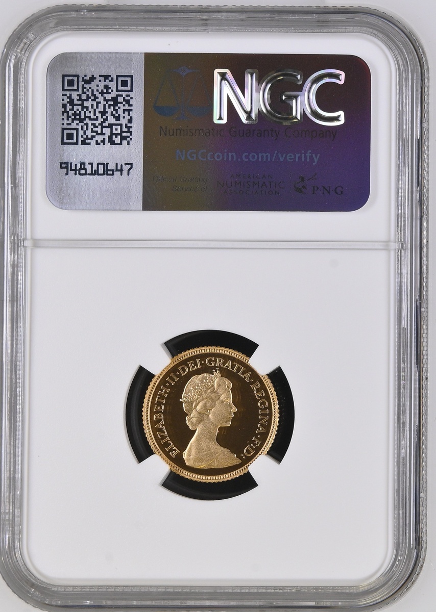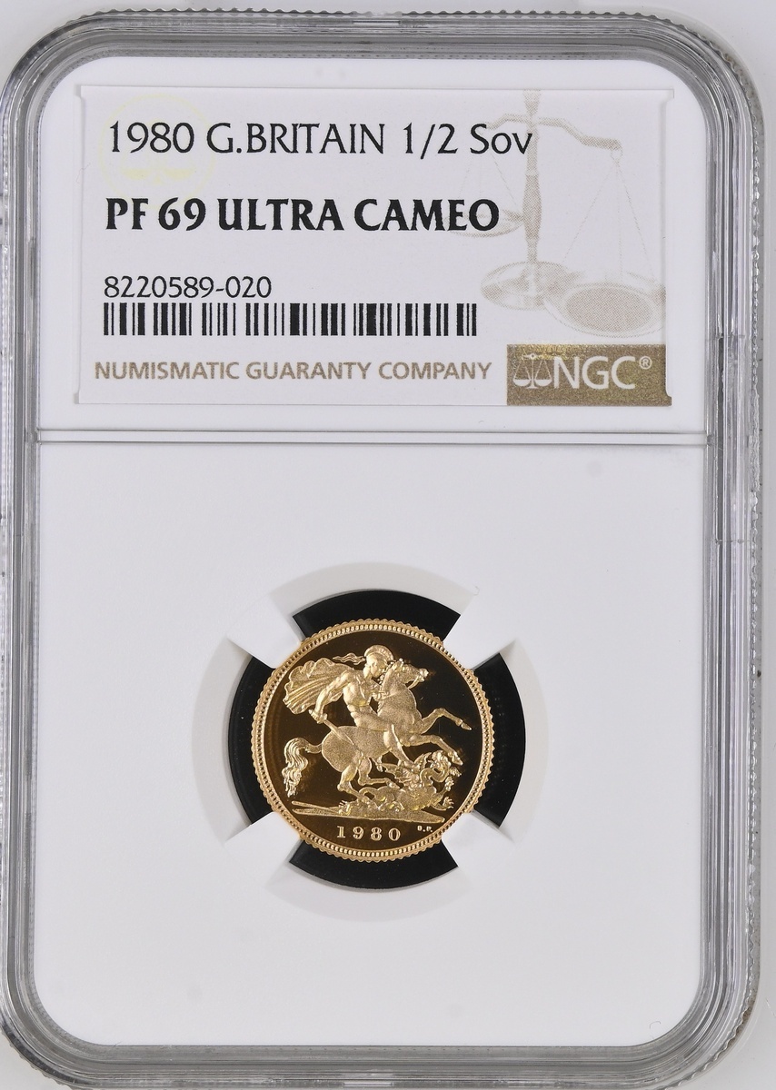 (g) NGC PF69 ULTRA CAMEO | Elizabeth II (1952-2022), Proof Half-Sovereign, 1980, crowned bust right, by Arnold Machin, rev. St George and Dragon, edge milled, 12h (S.SB1), brilliant as struck, in NGC holder, graded PF69 ULTRA CAMEO (Cert. #8220589-020)