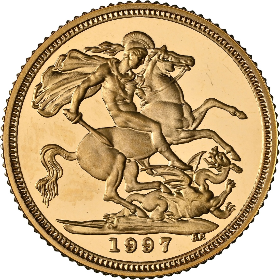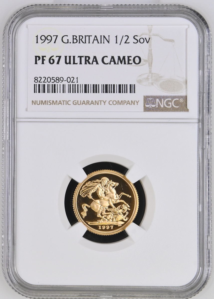 (g) NGC PF67 ULTRA CAMEO | Elizabeth II (1952-2022), Proof Half-Sovereign, 1997, crowned bust right, by Raphael Maklouf, rev. St George and Dragon, edge milled, 12h (S.SB2), evidence of previous handling to obverse, otherwise brilliant as struck, in NGC holder, graded PF67 ULTRA CAMEO (Cert. #8220589-021)
