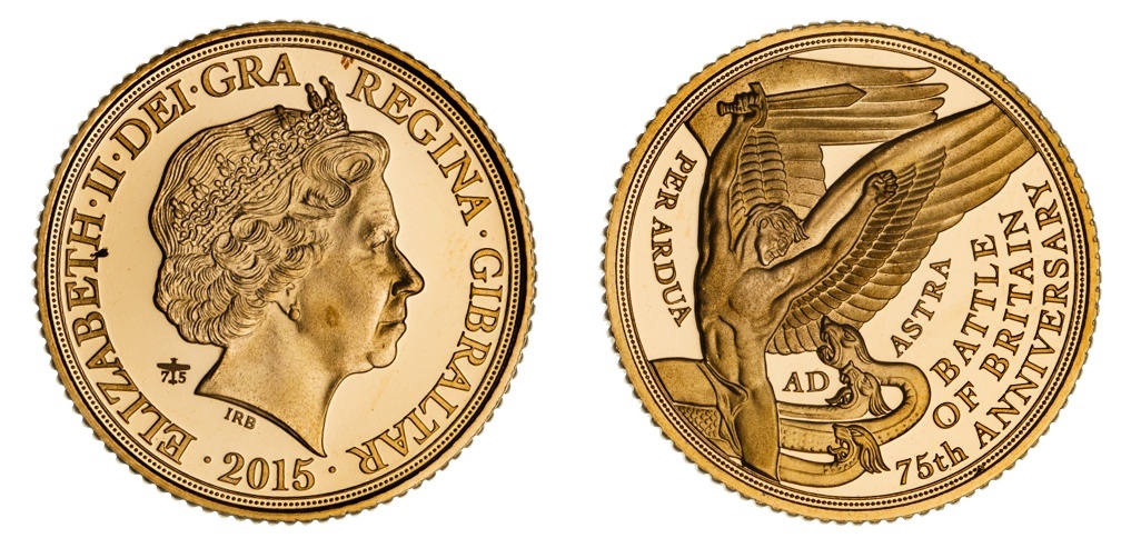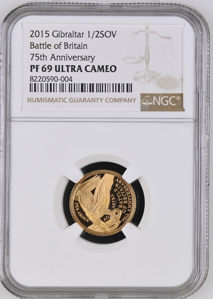 (g) NGC PF69 ULTRA CAMEO | Gibraltar, Elizabeth II (1952-2022), Proof Half-Sovereign, 2015, Battle of Britain, 75th Anniversary, crowned bust right, by Ian Rank-Broadley, edge milled, 12h, brilliant as struck, in NGC holder, graded PF69 ULTRA CAMEO (Cert. #8220590-004)