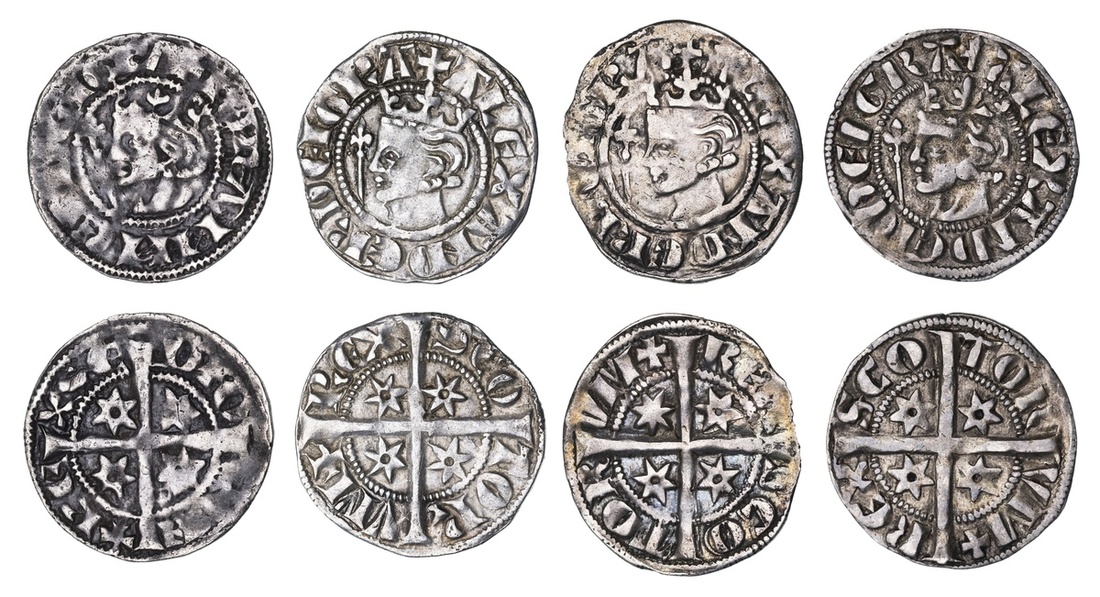 Scotland, Alexander III (1249-1286), Second Coinage, Pennies (4), c. 1280-1286, including Class Mb (3) and D, 1.44g; 1.39g; 1.31g; 1.39g (S.5054 and 5057), varying conditions, the Class D very fine, the others fine or slightly better (4)