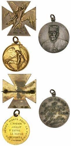 The Journee du Poilu pin badges were sold to raise funds in France for the war effort. The direct translation of Poilu is 'the hairy one'. The phrase came to be used as a nickname for regular French infantryman during the First World War, in the same way the name 'Tommy' became synonymous with British soldiers. The word carries the sense of the infantryman's typically rustic, agricultural background, and derives from the bushy moustaches many French soldiers grew.