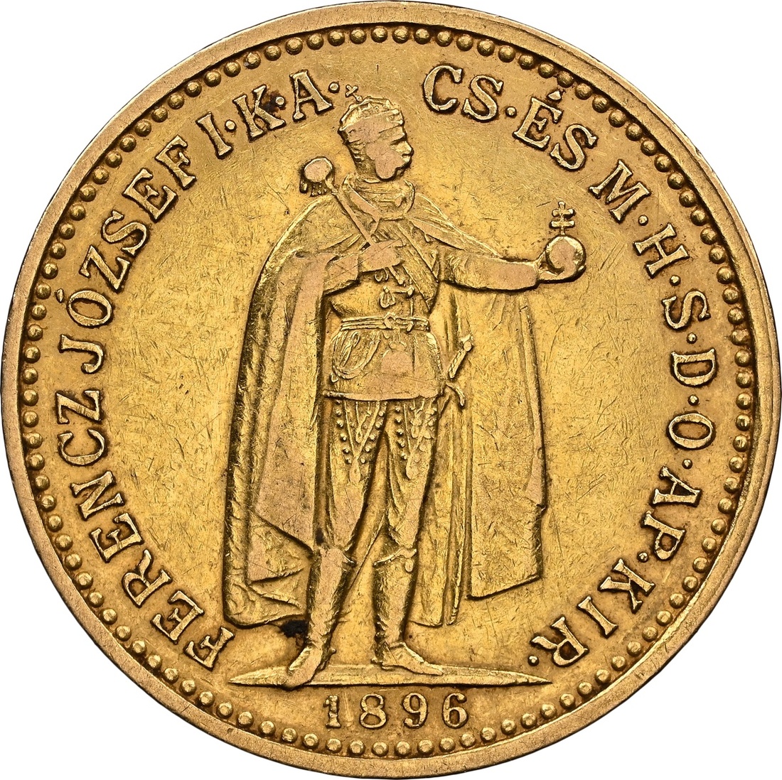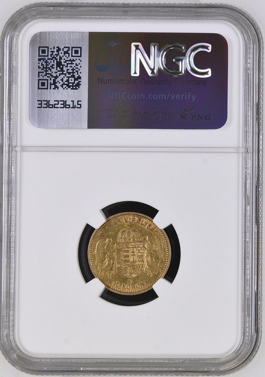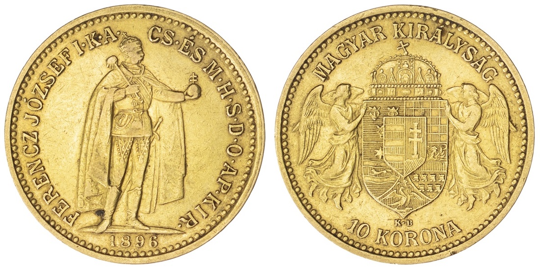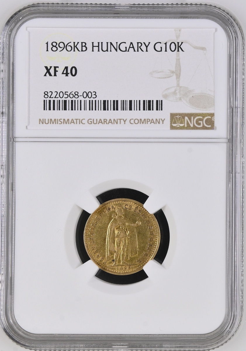 (g) NGC XF40 | Hungary, Francis Joseph I (1848-1916), 10 Korona, 1896, MAGYAR KIRÁLYSÁG, crowned shield with angel supporters, rev. FERENCZ JÓZSEF I.K.A.CS. ÉS M.H.S.D.O.AP.KIR., Emperor standing, 3.37g, 11h (KM 485; Unger 1491; Lajos 2200), the key date in the series, one of only 31,890 minted, rare, worn to the higher devices, honey gold tones, very fine, in NGC holder, graded XF40 (Cert. #8220568-003)