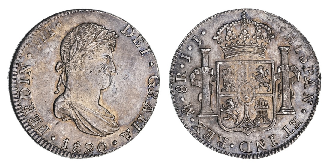 Mexico, Ferdinand VII (1808-1821), 8-Reales, 1820 Mexico City, laureate and draped bust right, rev. crowned shield within pillars, security edge, 26.99g (Calicó 1463; KM 111), some contact marking to the face, otherwise with a pleasing original lustre to light toned surfaces, good extremely fine