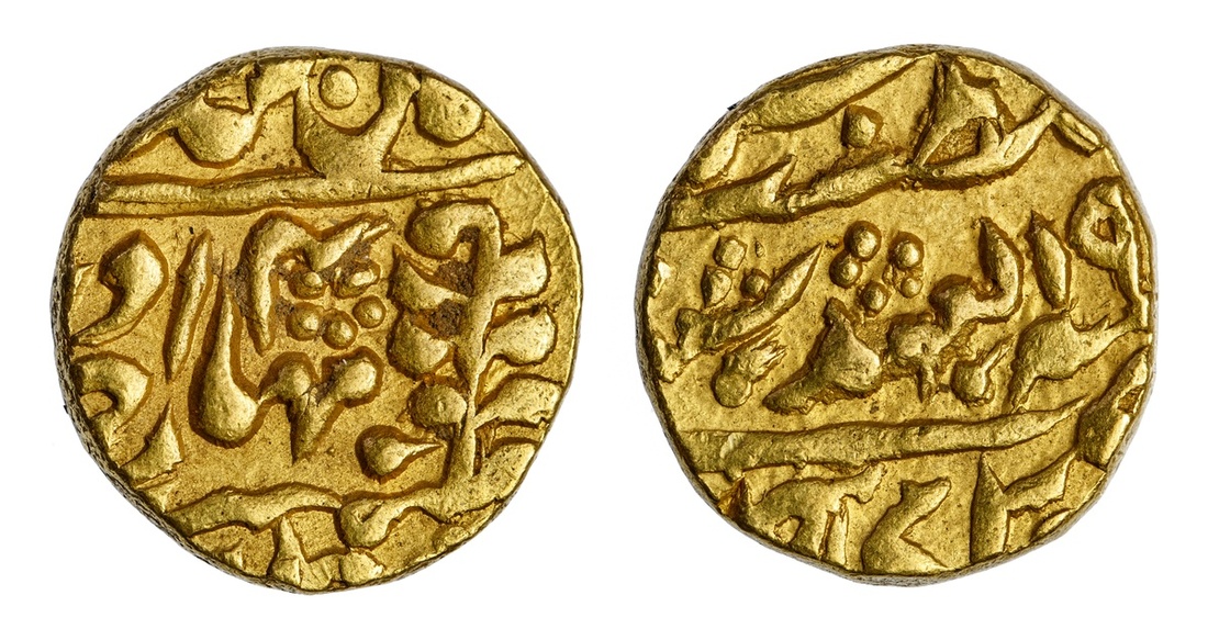 (g) Princely States, Jaipur, Madho Singh II (1880-1922), gold Mohur, 10.87g, Sawai Jaipur, ry.4 (1883), in the name of Madho Singh and Queen Victoria (KM 150), very fine