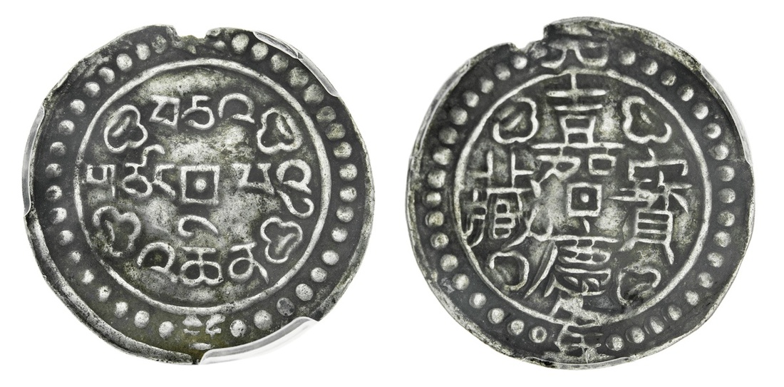 Tibet, Jia Qing, 1 Sho, 1st Year (1796), (cf. Rhodes 2013, lot 50-51; LM 641; C 83.1), clipped and crimped, otherwise a pleasing strike, bolder very fine, in PCGS holder, graded PCGS Genuine ~ Exc. Clipping VF DETAIL (Cert. #48254102)