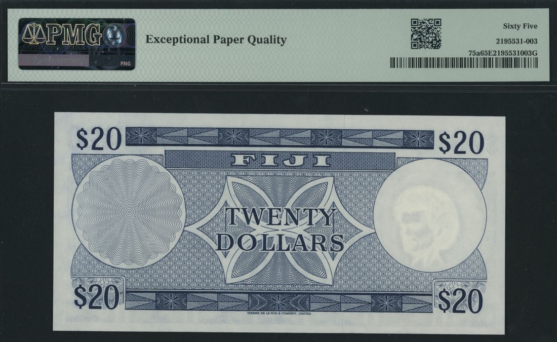 (x) Central Monetary Authority, Fiji, 20 Dollars, ND (1974), serial number A/1 650956, (Pick 75a, BNB 406), in PMG holder 65 EPQ Gem Uncirculated