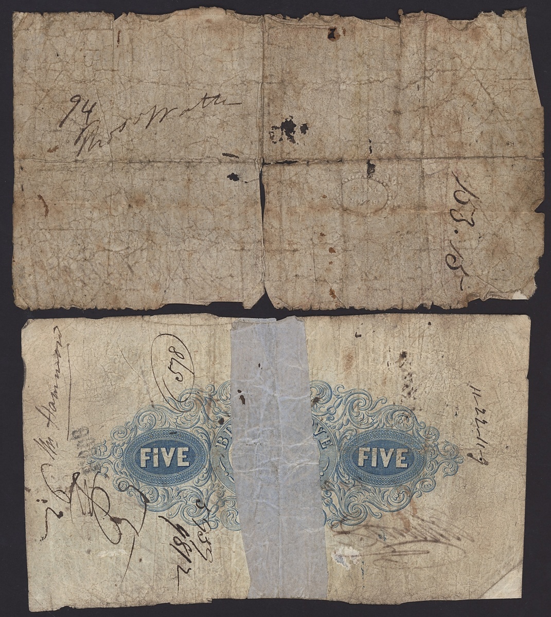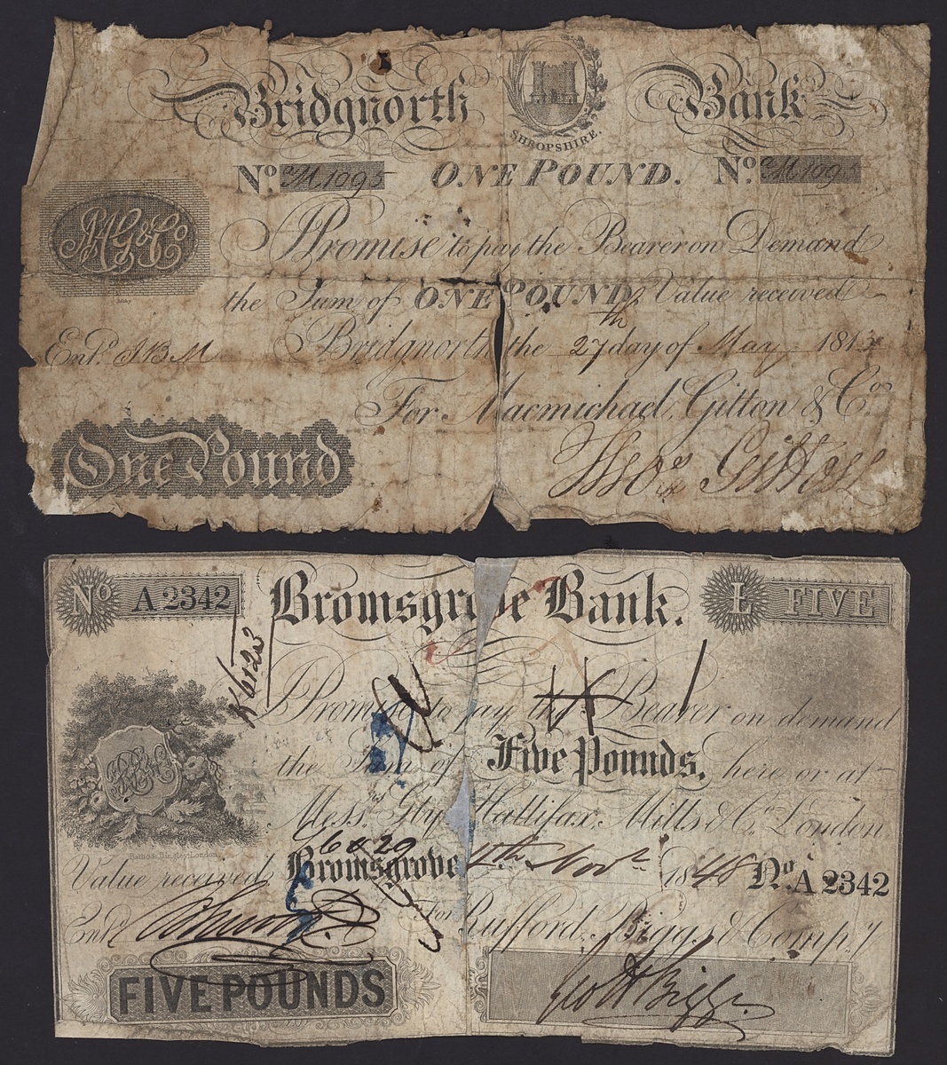 Bromsgrove Bank, £5, 11th? November 1848, serial number A2342;