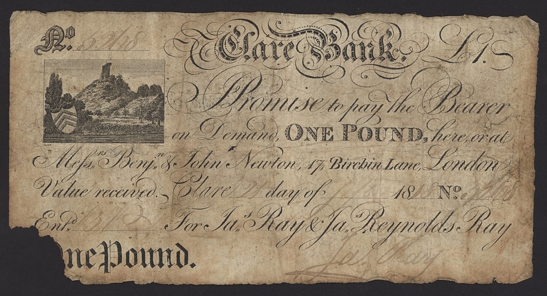 Clare Bank, £1, 21st September? 1818, serial number 5268;