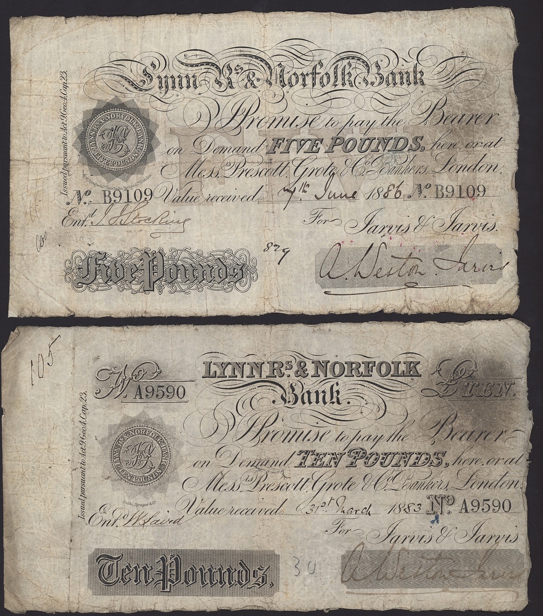Suffolk and Norfolk, [3 notes] £1, £5, £10, 1818-1882,