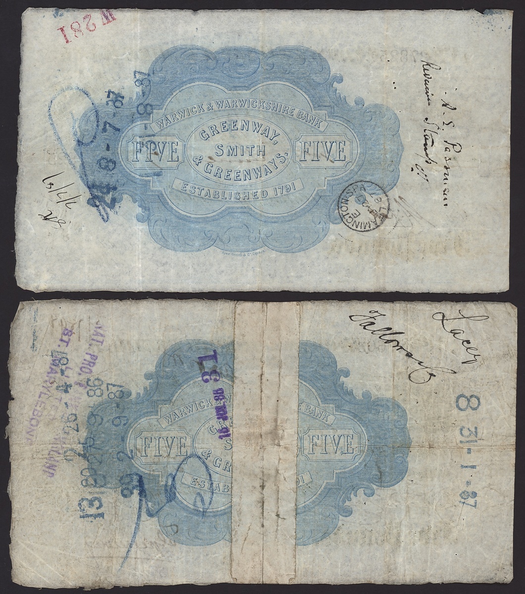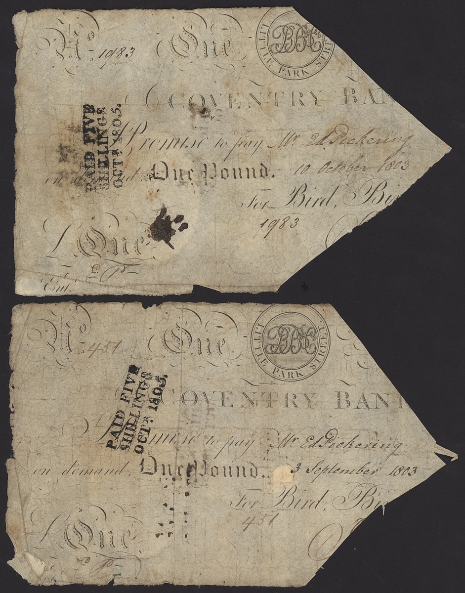 Coventry and Warwick, [5 notes] £1, £5, £10, 1803-1887,