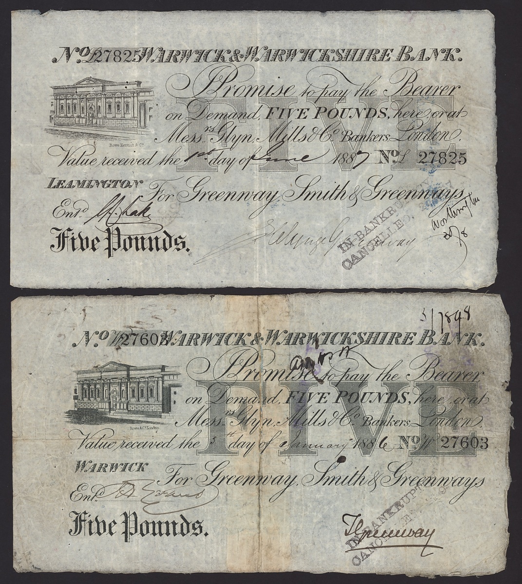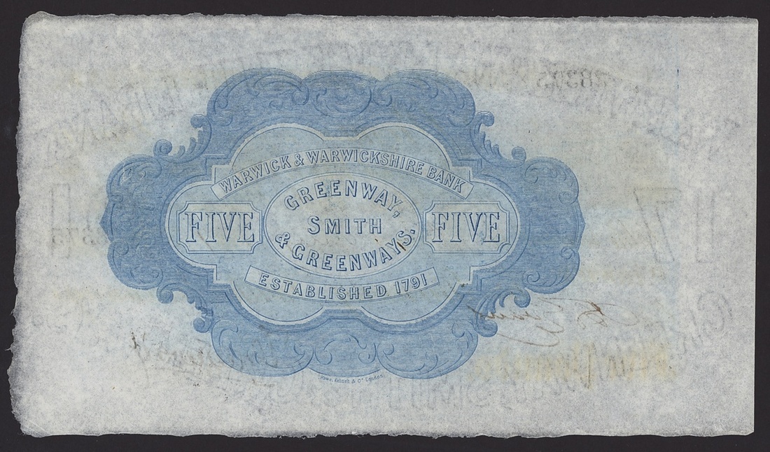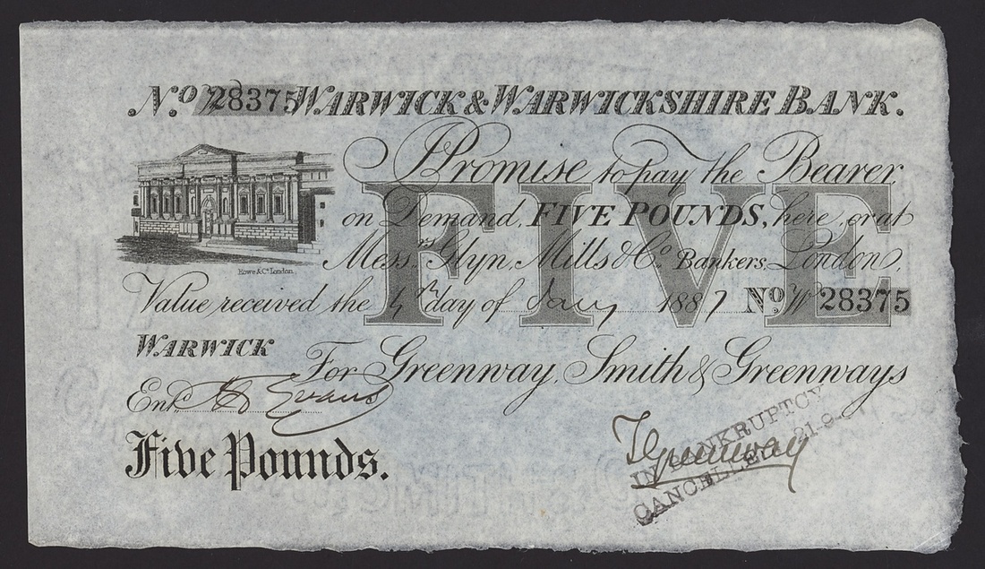 £5, Warwick, 5th January 1886, serial number W27603,
