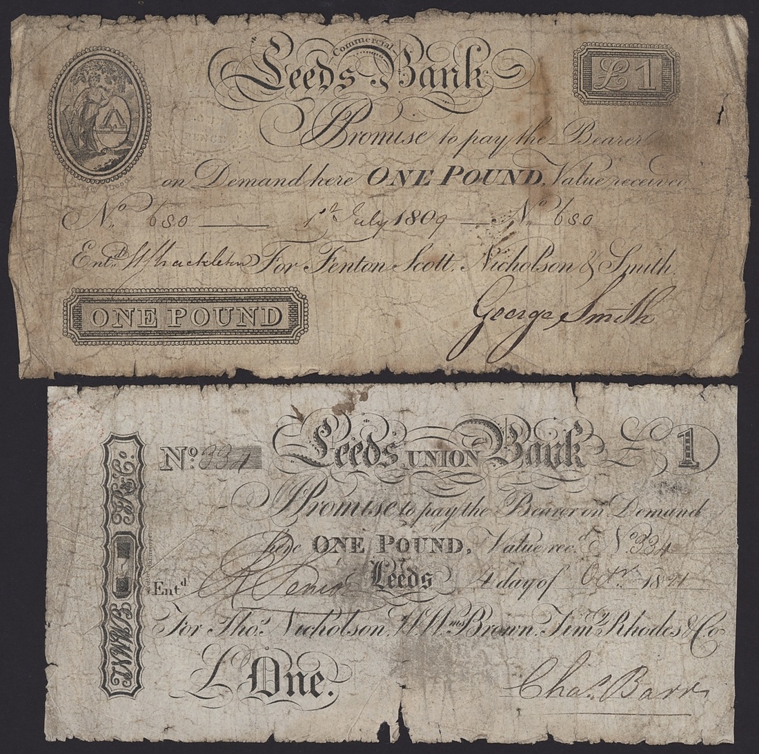 Leeds Commercial Bank, £1, 1st July 1809, serial number 650, signed George Smith;