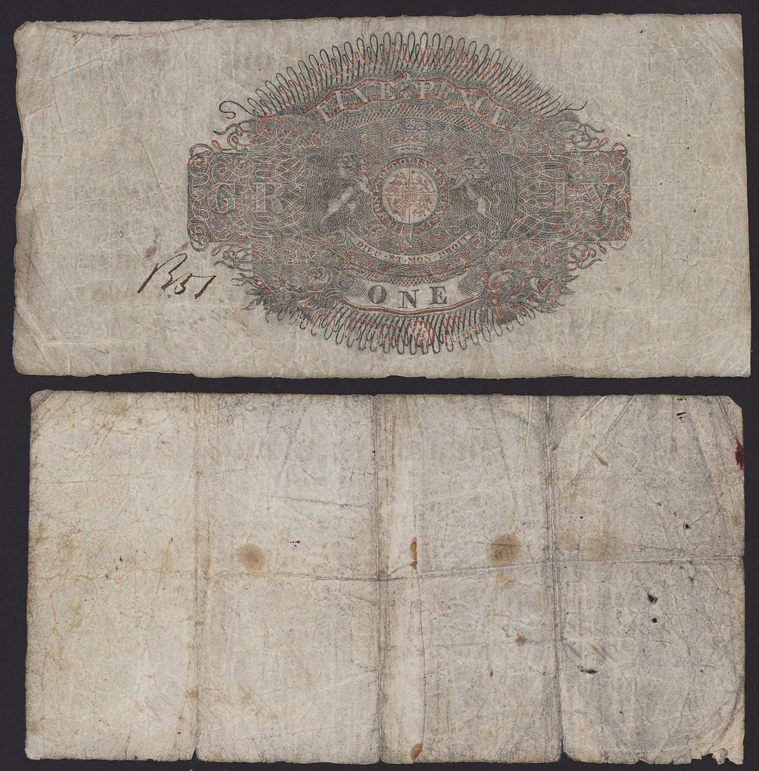 Devonshire Provincial Notes, [2 notes] £1, £5, 1823-35, Devonport Bank, £1, 1st January 1823, serial number 822;