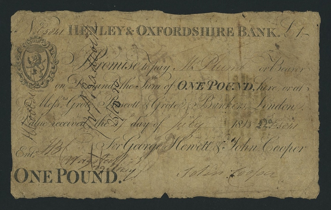 Henley and Oxfordshire Bank, £1, 27th July 1818, serial number E5841;