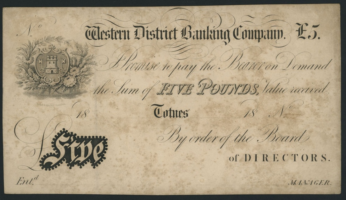 Western District Banking Company, proof £5, 18-- (ca. 1836-44), no serial number