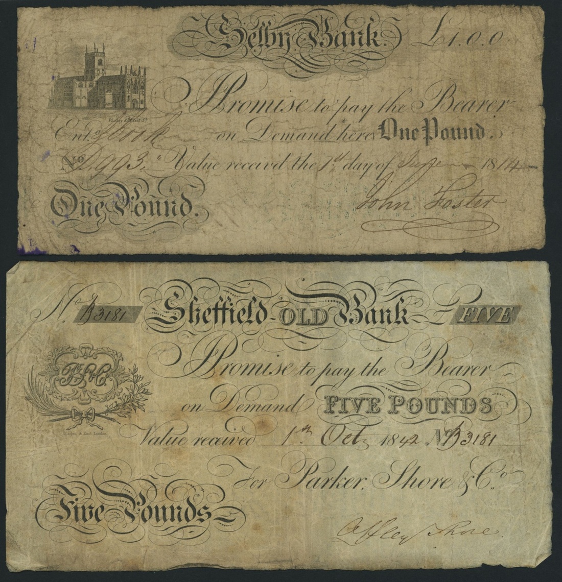 Sheffield Old Bank, £5, 1st October 1842, serial number B3181;