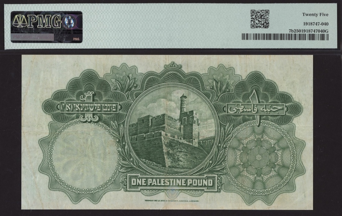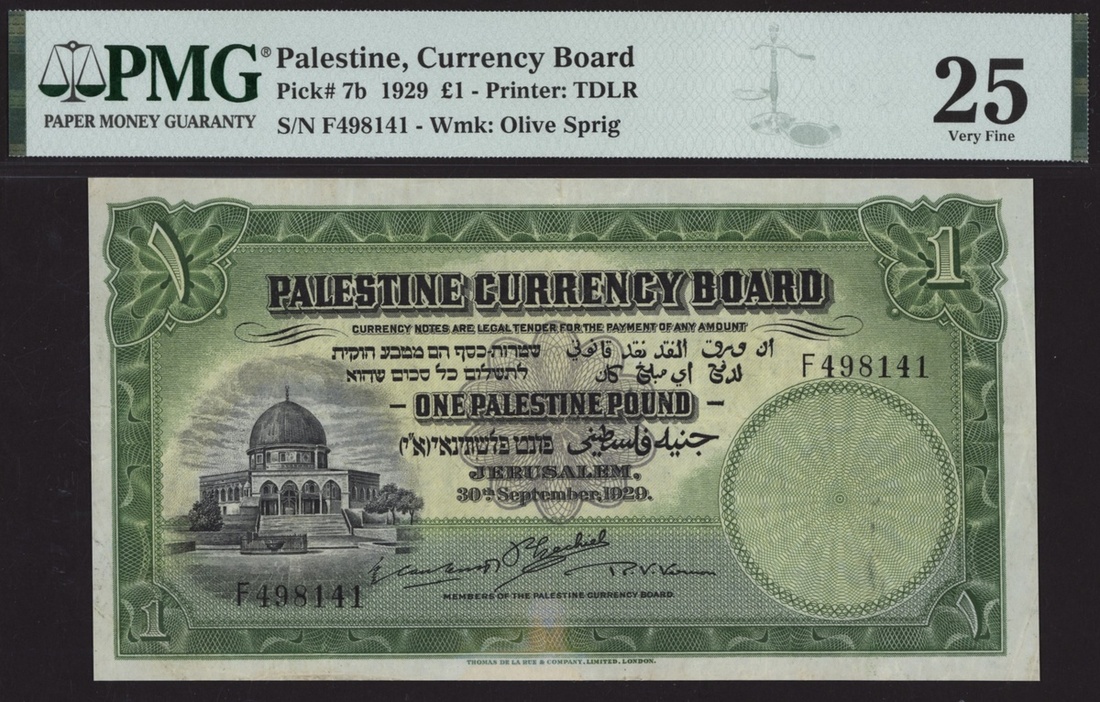 (x) Palestine Currency Board, £1, Jerusalem, 30th September 1929, serial number F498141, (Pick 7b, BNB 102b), in PMG holder 25 Very Fine