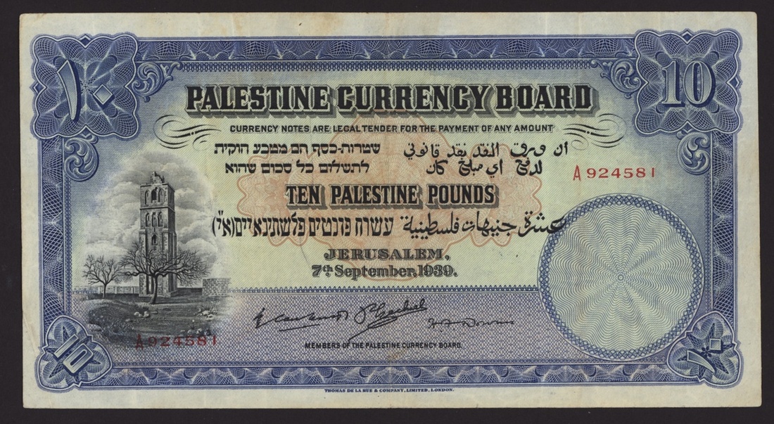 (x) Palestine Currency Board, 10 Palestine Pounds, Jerusalem, 7th September 1939, serial number A924581,
