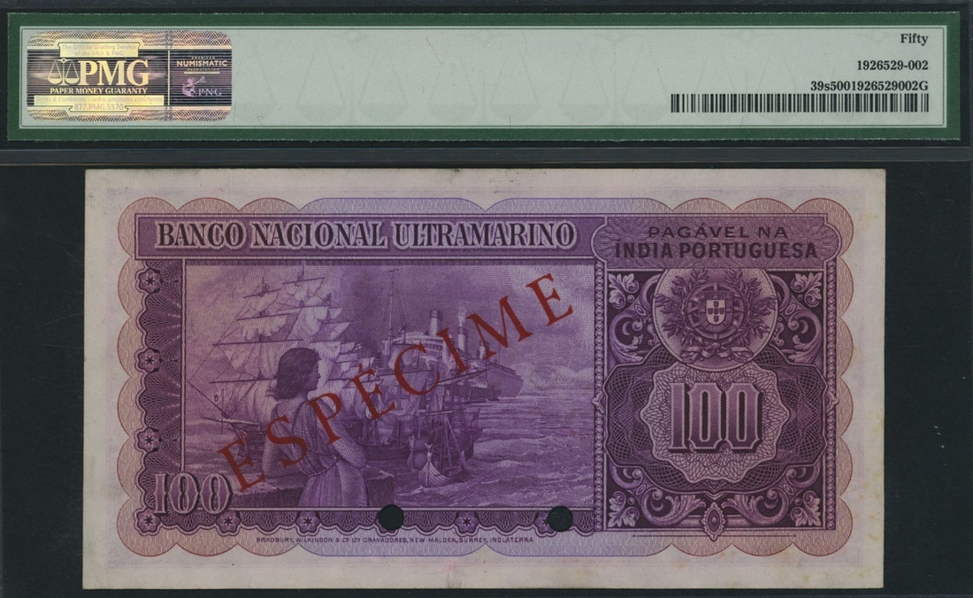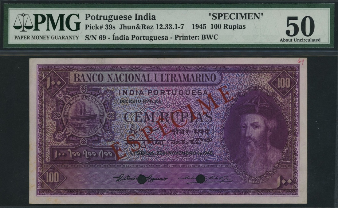 (x) Banco Nacional Ultramarino, Portuguese India, specimen 100 Rupias, Lisbon, 29th November 1945, '69' annotation