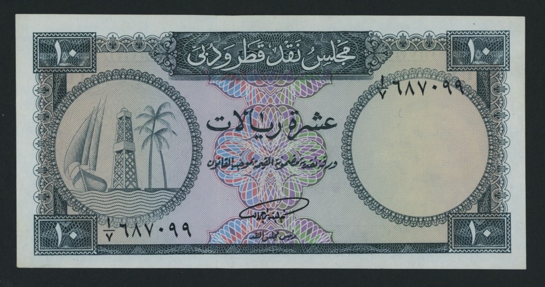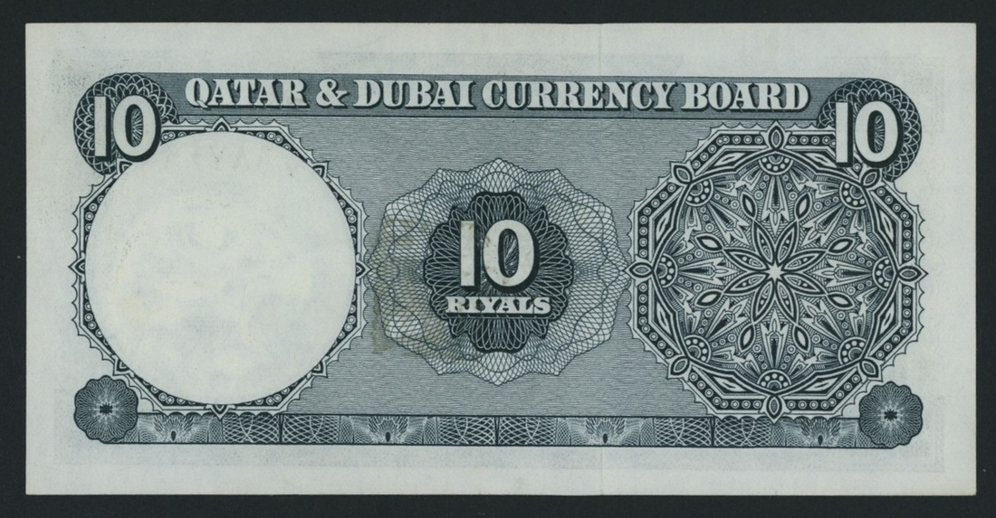 (x) Qatar & Dubai Currency Board, 10 Riyals, ND (ca. 1960s), serial number A/7 687099, (Pick 3a, BNB 103a), extremely fine