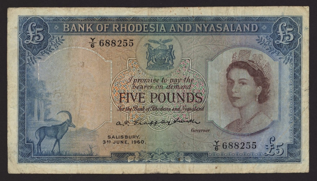 Bank of Rhodesia and Nyasaland, £5, Salisbury, 3rd June 1960, serial number Y/6 688255, (Pick 22a, BNB 103), fine
