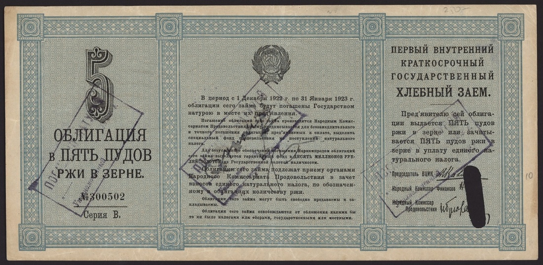 Russia, Soviet State Government Loan, 1922-23, handwritten signature and stamped