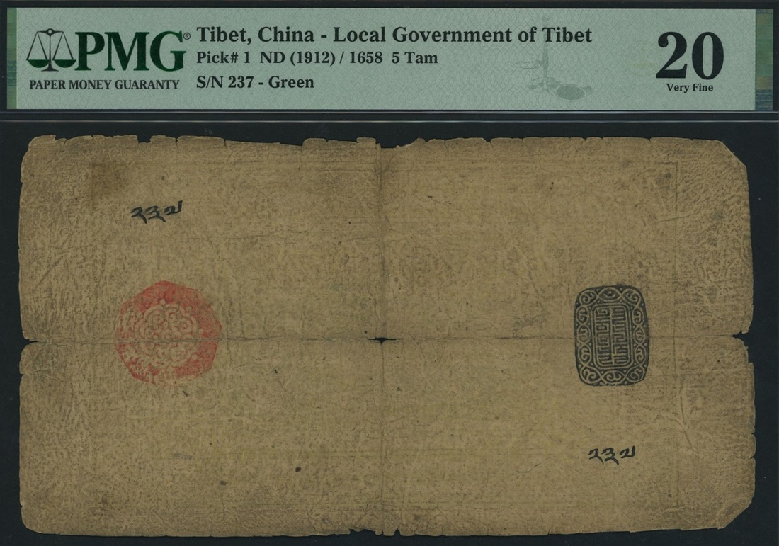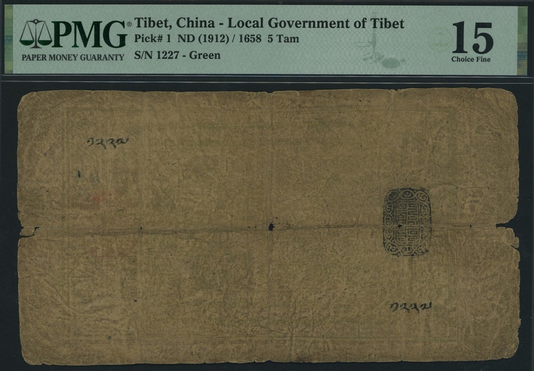 Government of Tibet, Group of 7 notes of 5 Tam including one consecutive pair, serial number 237, 0169, 1227-8, 4699, 2335 and 8043,