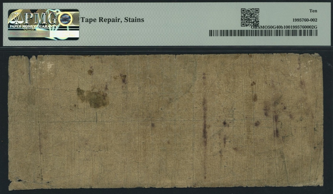(M0-50G-40b), in PMG holder 10 Very Good, tape repairs, stains