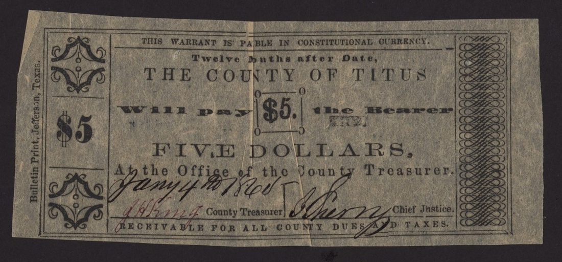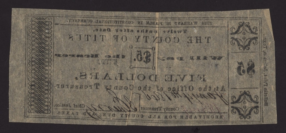 (x) The County of Titus, Texas, $5, 4th January 1861,