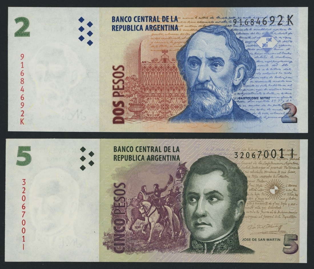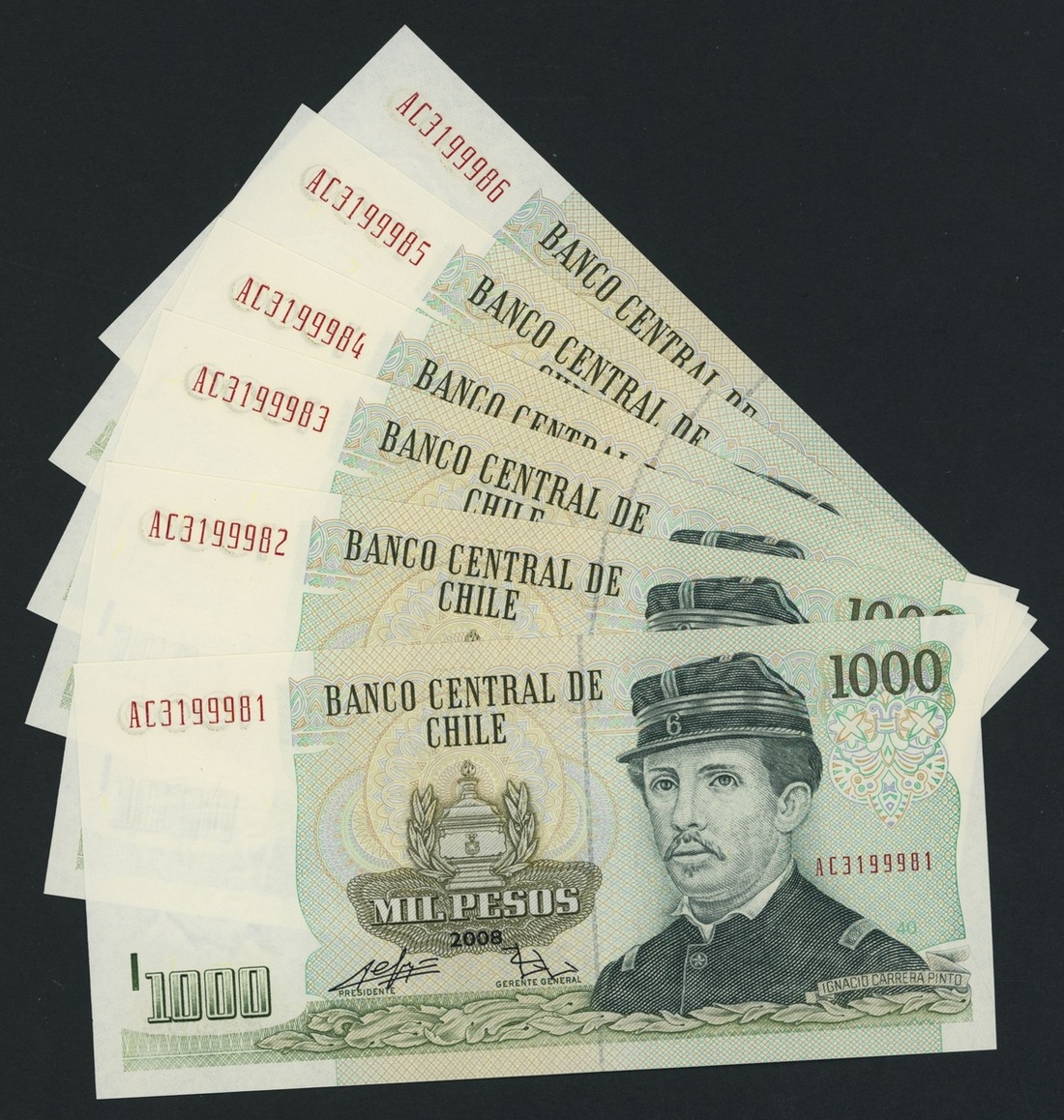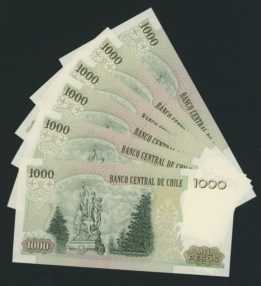 (x) A group of South American banknotes, including Argentina (4), Bolivia (2), Chile (9), Paraguay (10),