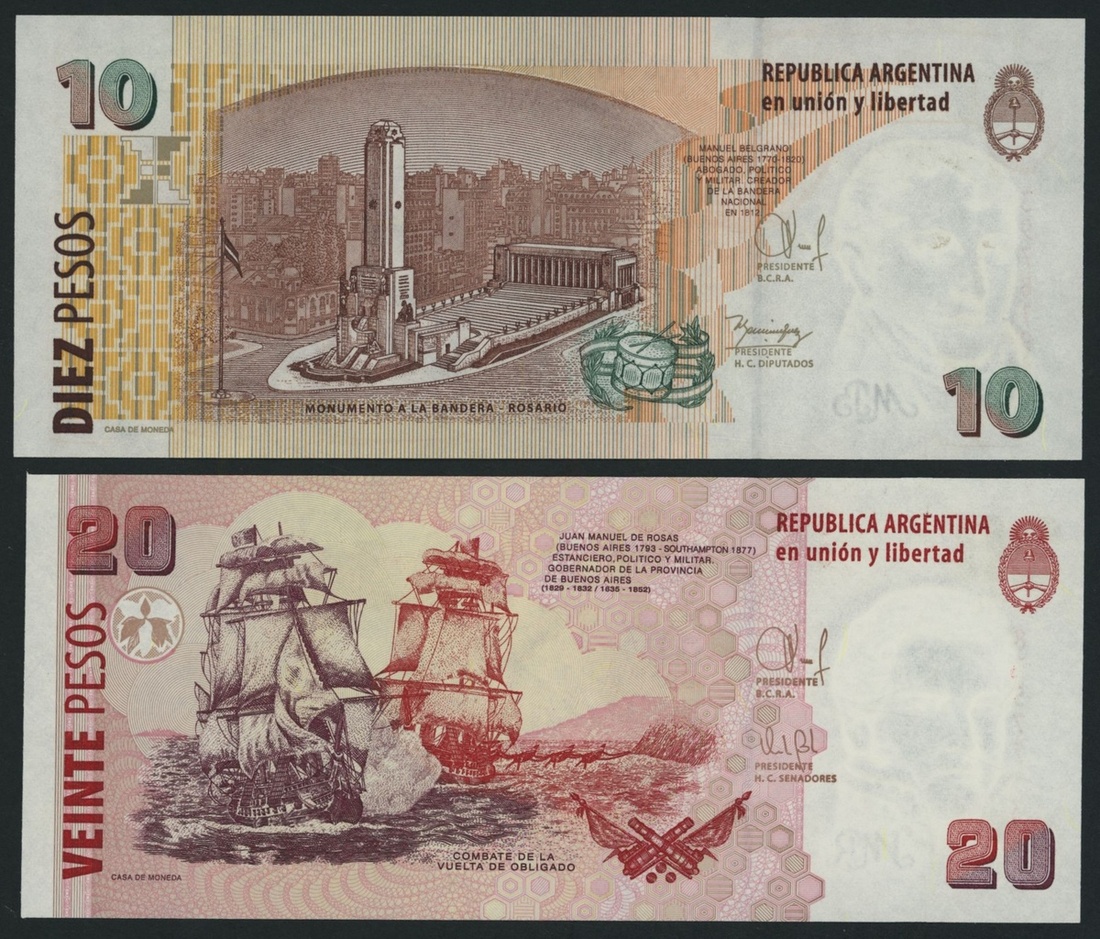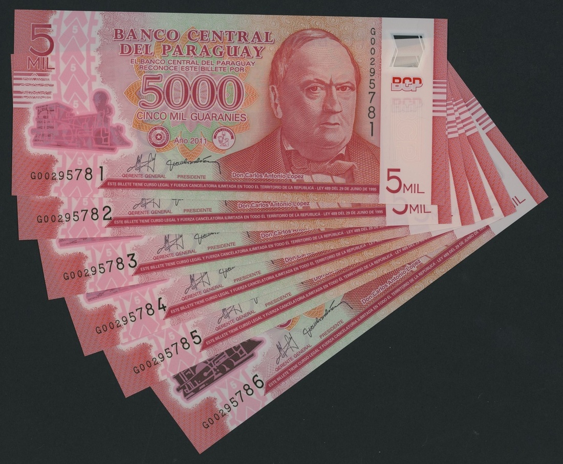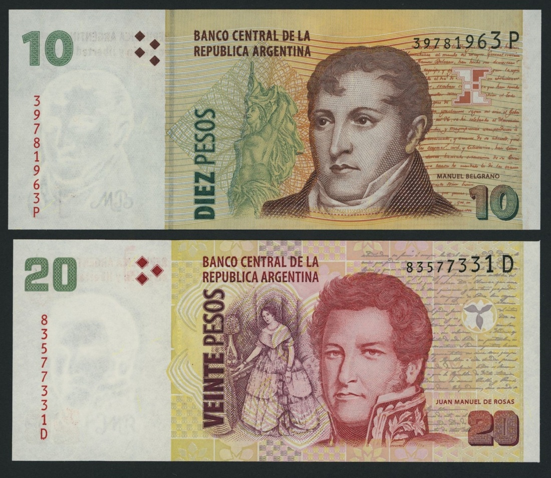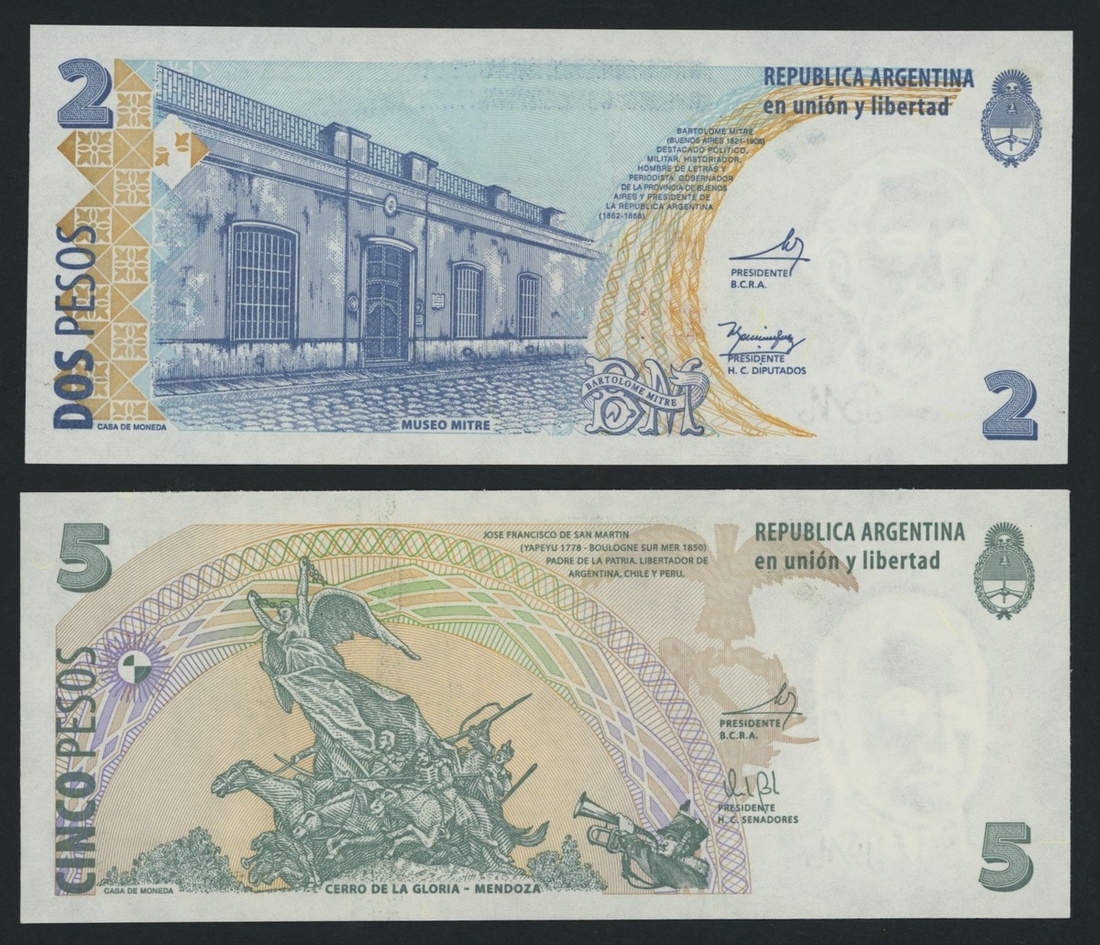 (x) A group of South American banknotes, including Argentina (4), Bolivia (2), Chile (9), Paraguay (10),