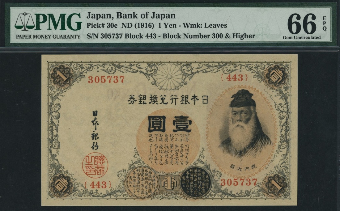 (Pick M22a, 20, 30, BNB 5017, 312), some notes in PMG holders 12 Fine to 66 EPQ Gem Uncirculated, other notes good extremely fine (5 notes)